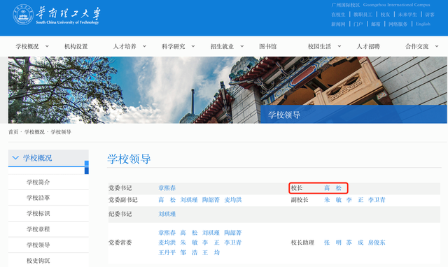 华南理工大学官网学校领导栏显示,校长一职仍为高松担任。这意味着,高松院士自2021年11月担任中山大学党委副书记、校长以来,同时仍继续担任华南理工大学党委副书记、校长。中山大学官网显示,生于1964年的高松,籍贯安徽省泗县,历任北京大学化学与分子工程学院党委副书记(2000年4月—2002年5月)、北京大学化学与分子工程学院副院长(2002年5月—2006年6月)、北京大学化学与分子工程学院院长(2006年6月—2010年11月)。2012年6月起任北京大学党委常委,2013年4月至2013年9月任北京大学党委常委、教务长。2013年9月至2015年3月任北京大学党委常委、副校长、兼任教务长。2015年3月至2017年10月任北京大学党委常委、副校长,兼任教务长和研究生院院长。2017年10月至2018年4月任北京大学党委常委、副校长,兼任教务长。2018年4月至10月任北京大学党委常委、常务副校长,兼任教务长。2016年5月至今兼任中国科学技术协会第九届、第十届全国委员会副主席。2018年10月至今任华南理工大学党委副书记、校长。2021年11月,任中山大学党委副书记、校长,主持学校行政工作,分管审计。