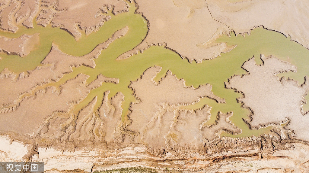 近日,河南洛阳市,孟津区境内的黄河小浪底库区河床上的“龙形”脉络奇观。