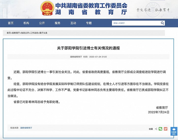 ·湖南省教育厅通报高校1800万引进菲律宾博士:学院党委书记被免职。