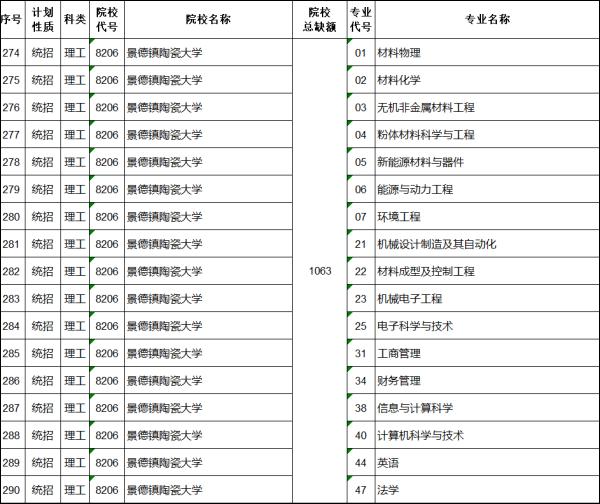 上述统计表显示,这1063个缺额涉及材料物理、材料化学、无机非金属材料工程、环境工程、工商管理、计算机科学与技术、英语、法学等17个专业。