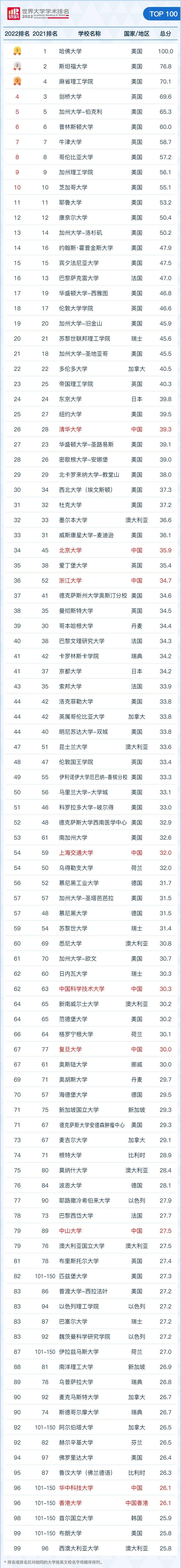 2022软科世界大学学术排名公布,中国内地8所高校位列世界百强!