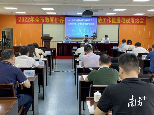 4月15日上午,2022年全市教育扩容提质千日攻坚行动工作推进电视电话会议举行,会议通报去年全市学校建设项目完成情况并部署今年工作。东莞市副市长黎军及各职能部门相关负责人参会,市住房城乡建设局、南城街道、黄江镇和大朗镇作为代表单位做工作介绍。