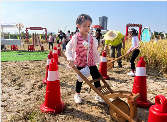 在东江印象活动现场,记者看到不少家长带着孩子们来园内游玩。在这里,孩子们可以放下手机和电脑,体验割麦子的乐趣,与动物们来个亲密接触,还可以报名种植栽培,学会如何与自然相处。
