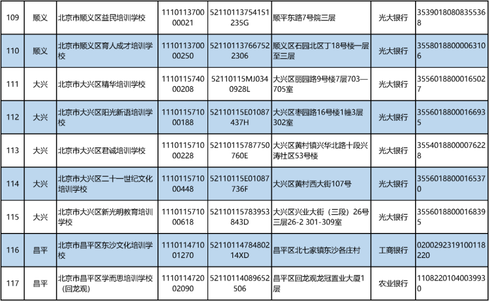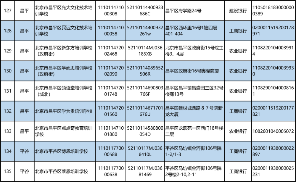 首份“白名单”共涉及152家机构,公示内容包括培训机构名称、办学许可证号、统一社会信用代码、办学地址、监管银行和监管账户等各类信息。