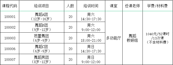 北舞芭蕾班:运用《北京舞蹈学院芭蕾舞分级考试教程》,教程内容由浅入深、由简到繁、由易到难、循序渐进,具有系统性和规范性。