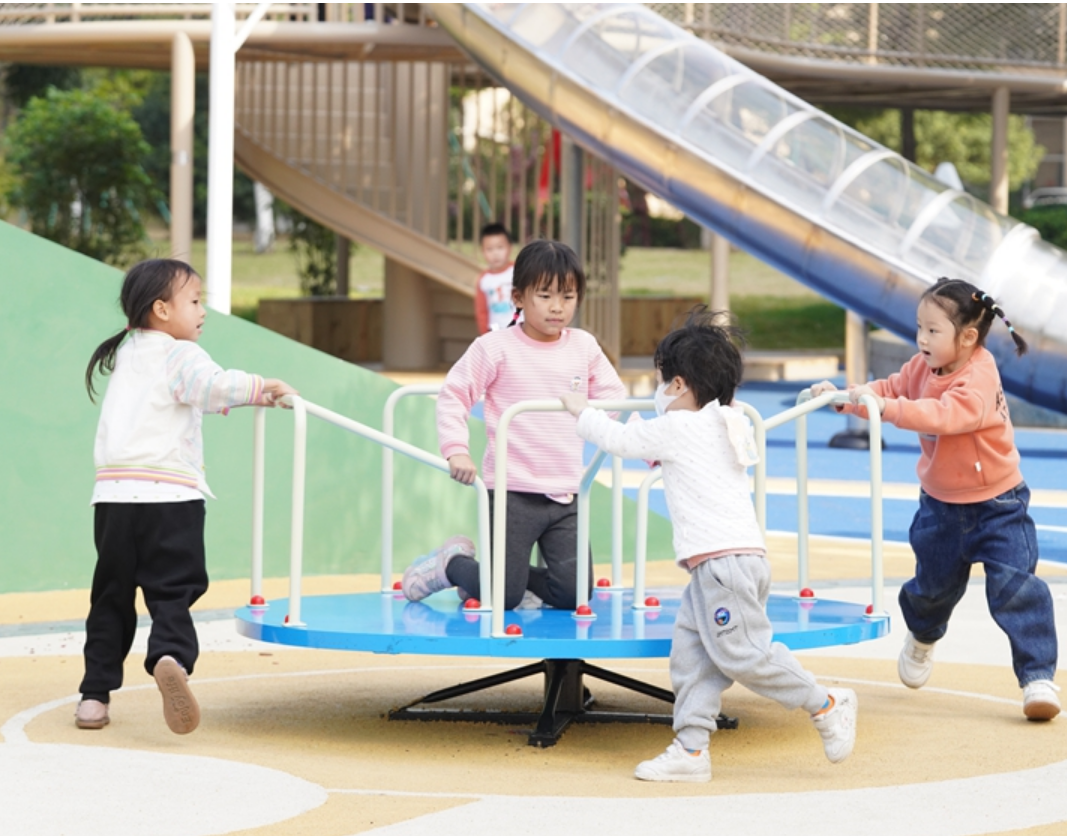 茶山镇儿童友好公园位于茶山公园内,整体占地面积约1300平方米,公园内童趣盎然、环境优美,绿树成荫。公园按照景观结构以及适用儿童年龄分为“三大故事空间”,分别为“森林剧场”“林间飞桥”“丛林探险”,以立体空间打造多维度体验感,设置了不锈钢滑梯、旋转楼梯、木桩爬网等游乐设施,小朋友可以沉浸式体验钻爬、穿行、平衡等多形式户外活动。