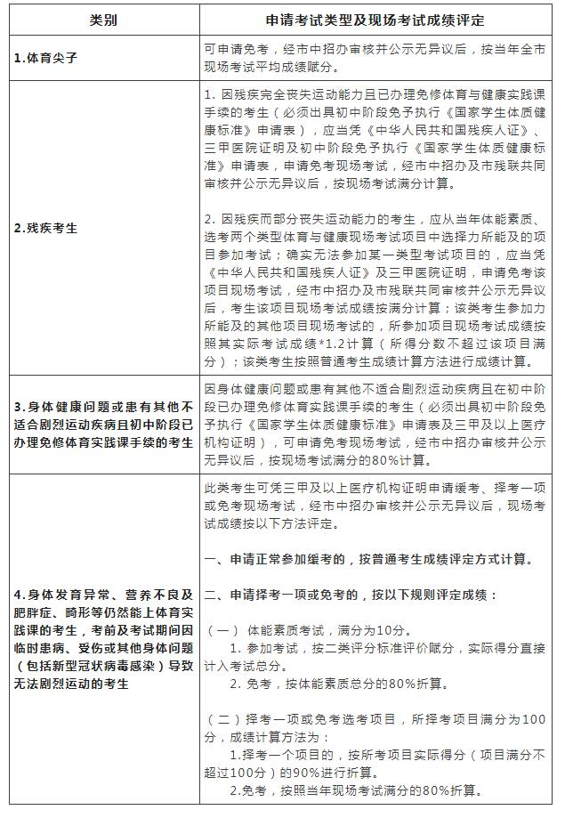 体育尖子和特殊考生的现场考试成绩评定方法如下: