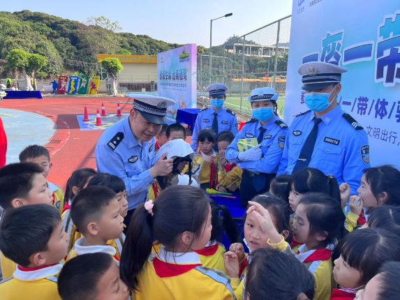 现场通过在校园开展交通安全“大篷车”进校园宣教活动,全面提升镇区学生参与交通文明素质与安全意识。
