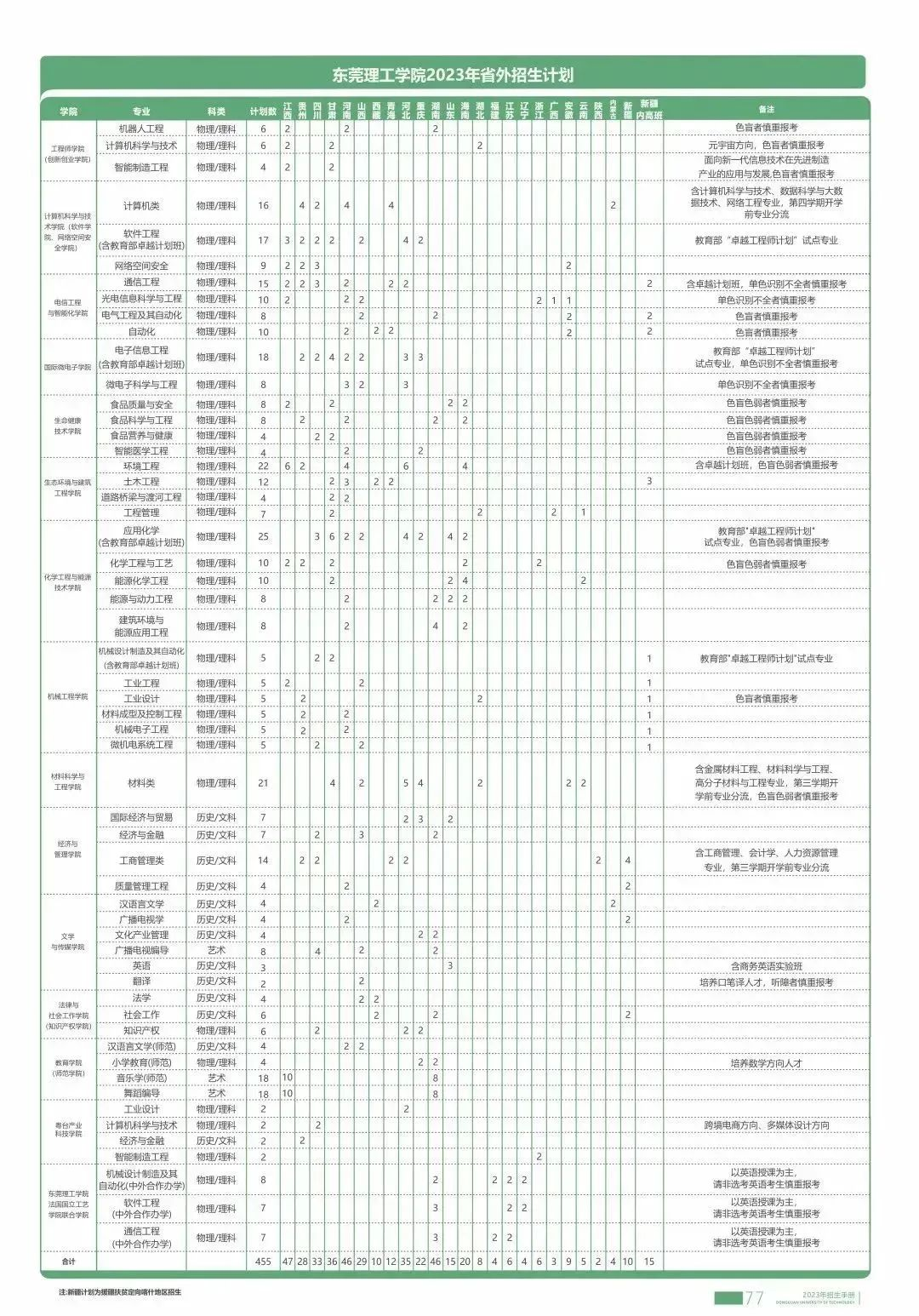 今年,莞工面向广东、江西、海南、贵州、山东、四川、甘肃、河南、河北、重庆、山西、青海、湖南、湖北、广西、安徽、云南、新疆、福建、浙江、陕西、江苏、辽宁、内蒙古、西藏等25个省(自治区、直辖市)拟招生4896人,其中广东省内拟招生4441人,广东省外拟招生455人。