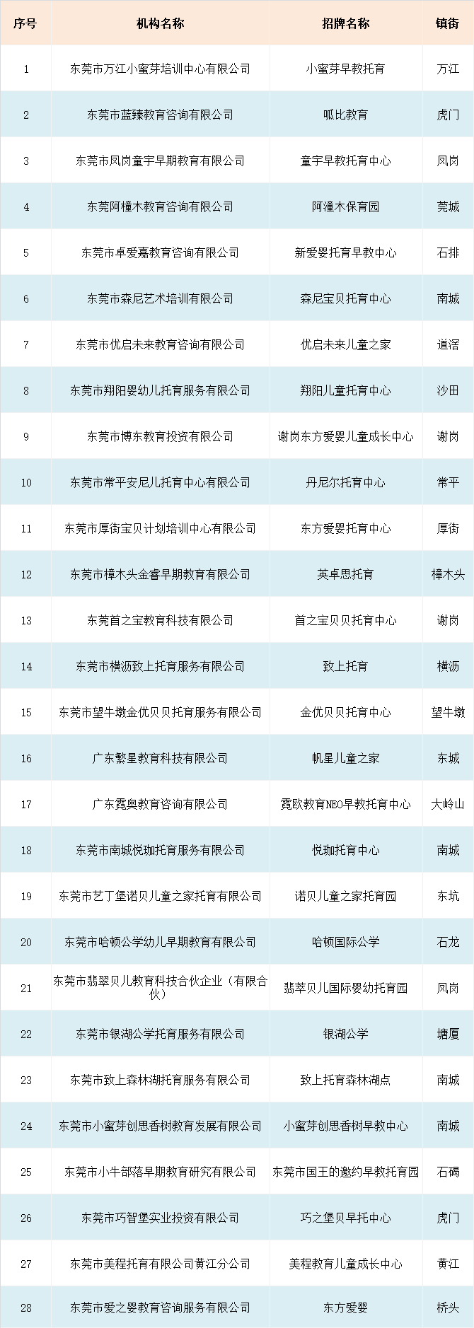 2023年4月,东莞市卫生健康局公布了全市28家机构为2022年“东莞市3岁以下婴幼儿照护优质服务示范机构”。(来源:东莞广播电视台综合东莞发布、东莞市卫生健康局、广州日报 )