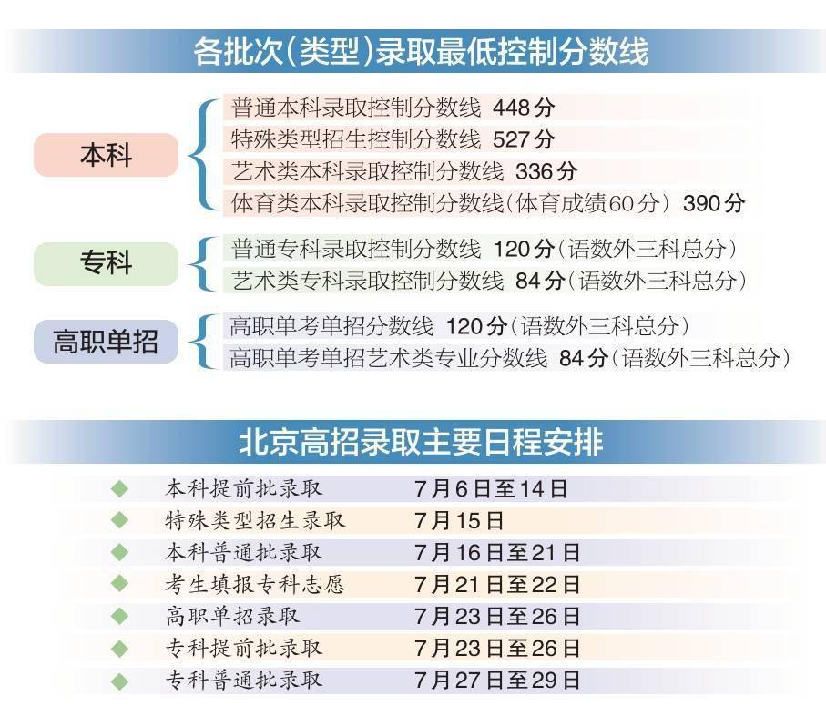 截至目前,本市高招报名、考试、评卷等工作环节的任务已顺利完成,各批次(类型)录取控制分数线公布。本科批次中,普通本科录取控制分数线为448分,特殊类型招生控制分数线为527分,艺术类本科录取控制分数线336分,体育类本科录取控制分数线(体育成绩60分)390分。其中,特殊类型招生控制分数线主要用于强基计划、高水平艺术团等特殊类型招生和提前批次有特殊要求的高校招生。