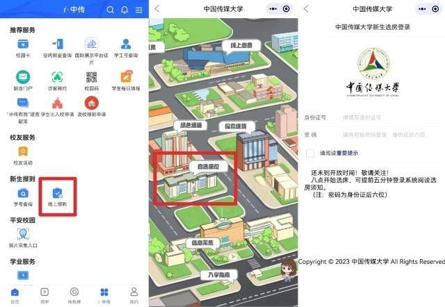 中传APP自选床位步骤。图片来源:中国传媒大学官方公众号