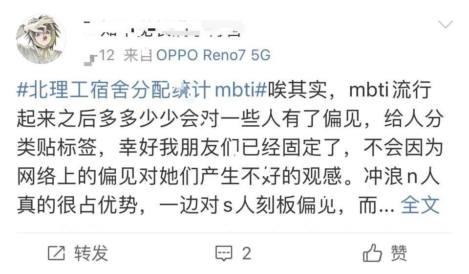 有一些网友表示质疑,大一新生没有熟人自选也是“开盲盒”,自己选用处不大,学校统一按照学号排宿舍也是缘分。甚至之前“北京理工大学宿舍分配统计MBT”的话题冲上热搜时,还有网友表示,MBTI会给人分类贴标签,容易对人有偏见。并且人的性格并不是一成不变的,时间也许会改变很多。