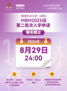 2024-09-12 10:03:37 | 教育香港中文大学(深圳)管理学理学硕士项目 MBM2025级第 二 批次入学申请将于 8 月2 9 日(星期四)24:00截止 ,...