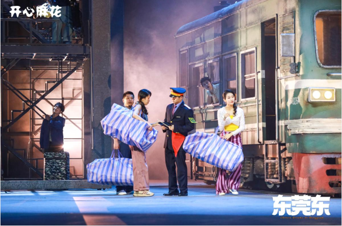 绿皮火车、大哥大、手袋厂车间、溜冰场……当这些承载着上世纪90年代印记的意象在舞台上轮番出现时,观众被音乐剧《东莞东》带入了一波集体怀旧潮。在改革开放的浪潮下,位于东莞市常平镇的东莞东火车站曾是许多人南下珠三角打拼的第一站。他们从这里走进中国改革开放的前沿,开始奋斗追梦的热血人生,投身滚滚向前的时代洪流,与东莞这座国际制造名城共同成长、相互成就。