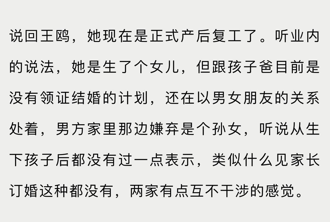 而且这个瓜闹得如此沸沸扬扬,王鸥也没有出来辟谣过,似乎算是直接“默认”了。不过这两天随着王鸥的正式公开露面,又有些关于她的新八卦传了出来。