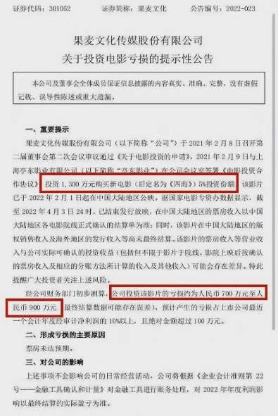 韩寒的《四海》也曝光过成本。上市公司果麦文化曾公告,果麦投资1300万元获得了《四海》5%的投资份额,最终投资亏损700-900万元。依此计算,《四海》的总投资额为2.6亿元,总亏损额为1.4-1.8亿元。