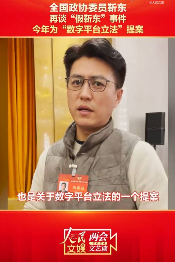 在今日下午的全国政协委员小组会议后,政协委员靳东接受记者采访提到,他今年的一个提案就是围绕“数字平台立法”。