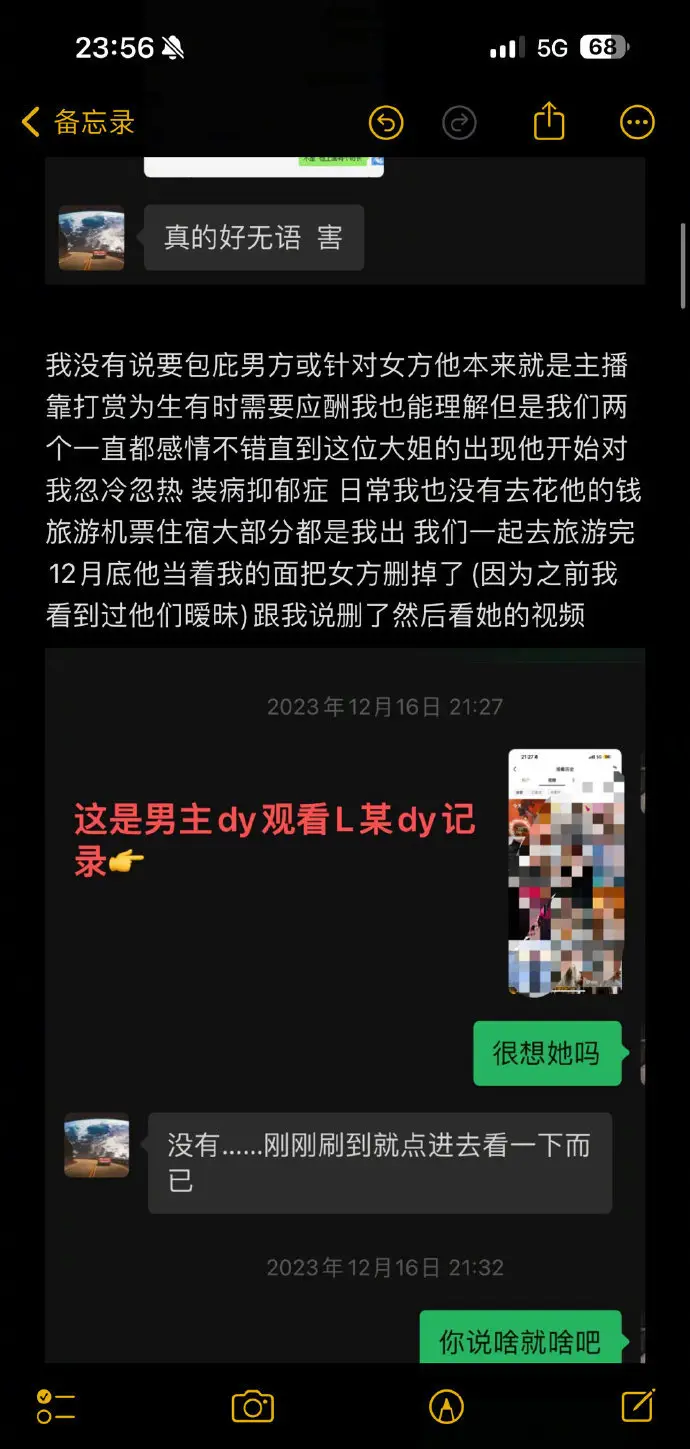4. 2023年12月底,男方当着女友的面删了李金铭,但会偷偷看李金铭抖y。