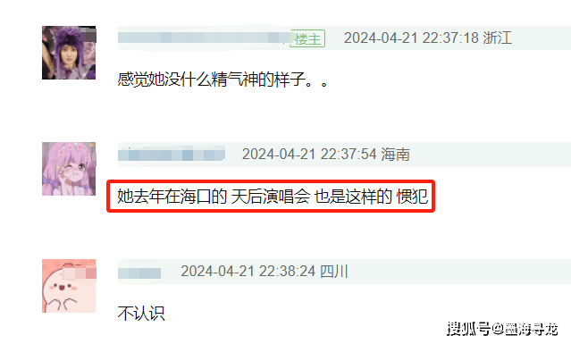 其实,许美静演出划水并非首次。据网友爆料,去年在海口的天后之夜演唱会上,她就是用类似的方式划水,一首《阳光总在风雨后》自己唱不到一半,大部分时间是把麦递给台下观众唱。如此看来许美静已是个“惯犯”,一次两次还好,每次都这样就不得不怀疑其是否敬业了。