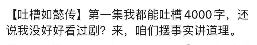 “我刚好当年看过《如懿传》,完全认同她的看法,又是游戏同好,当下就关注了。结果有剧粉应激,评论攻击她,说她没看过剧胡说。她为了证明自己不是胡说,开始正式一集接一集详细吐槽《如懿传》,反击这些攻击,特别精彩,吸引了很多人来看。”西敏寺告诉搜狐娱乐。