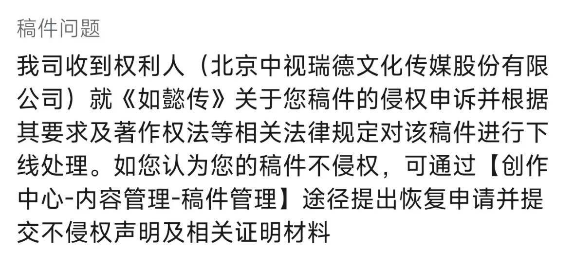 中视瑞德文化并非记录在案的《如懿传》出品方,而是一家负责版权管理的综合服务商。《与凤行》《画江湖之天罡》相关视频因版权原因被下架,也来自他们的投诉。