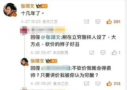搜狐娱乐讯 4月28日,一段张颂文在节目中砍价的视频释出,视频中张颂文和老板讨价还价,进而被网友吐槽穷酸人设。随后,张颂文本尊在评论区回应:不砍价我就会很帅?只要讲价我被你认为穷酸?
