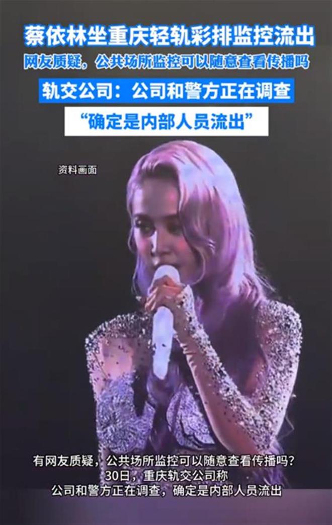 近日,蔡依林在重庆举办演唱会,有网友发现,一段蔡依林坐重庆轻轨的公共监控视频在网络流传,引发广泛质疑:公共场所的监控可以随便查看和传播吗?