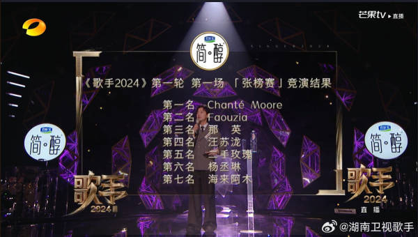 5月10日晚,时隔四年回归的湖南卫视“歌手”IP《歌手2024》公布了第一轮第一场“张榜赛”竞演结果,由美国歌手Chanté Moore、加拿大歌手Faouzia和中国歌手那英分别斩获前三名。