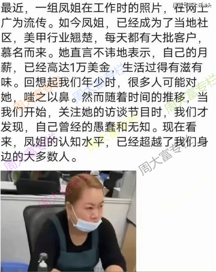 如今的凤姐,已经是当地社区美甲行业的翘楚,用自己的手艺吃饭,这一点不丢人,而且据说凤姐每月能赚1万多美金,要是在国内,也是六七万的收入了,这样的水平,已经超过大多数人