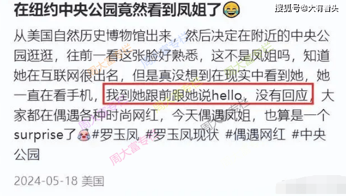 5月18日,有人在纽约中央公园偶遇了凤姐,相比在国内走红的年代,现在的凤姐显然有点发胖了,在这之前,有人说凤姐在国外生活得很滋润,也有人说凤姐也是在艰难度日