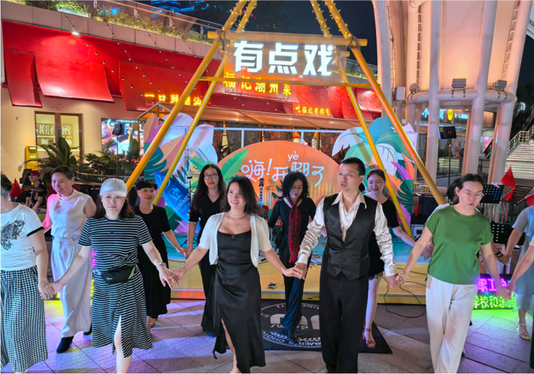 活动现场,舞蹈爱好者们伴随着乐队的演奏翩翩起舞,社交舞和拉丁舞轮番上演,将现场氛围推向高潮。乐队乐手徐辉建表示:“在这个国庆假期,我们自发组织节目,庆祝国庆,祝愿国家繁荣昌盛。”