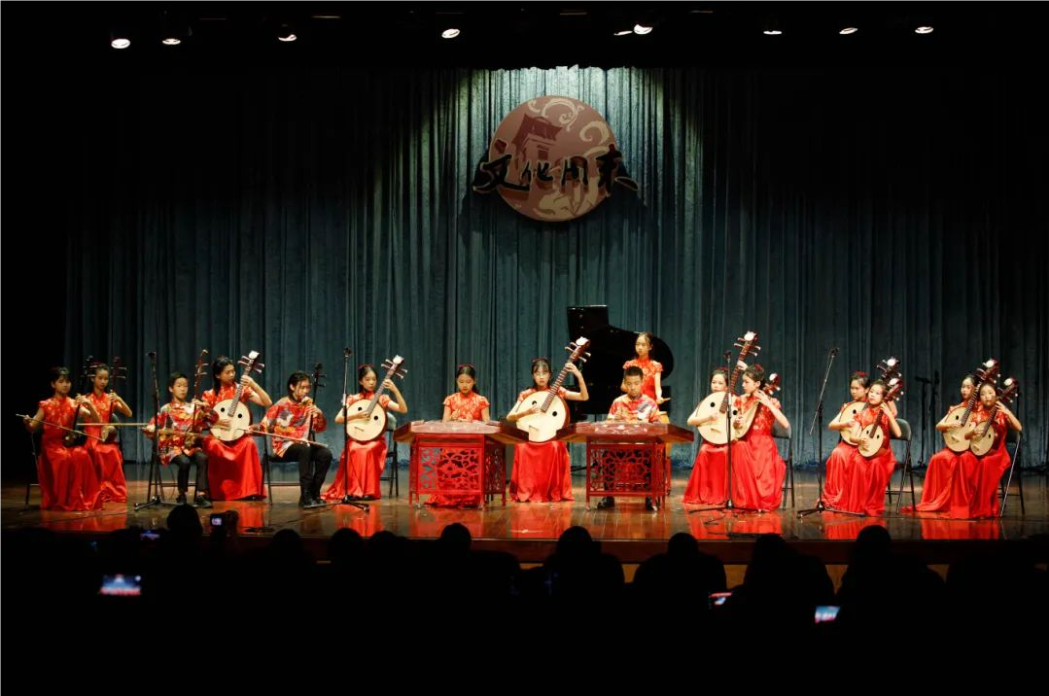 当晚8点,随着灯光渐暗,音乐会缓缓拉开序幕。莞城民乐团率先登台,带来了《打虎上山》《平湖秋月》等广府民乐,让观众感受到了民乐的文化魅力。东莞禾花雀青少年乐团则通过器乐合奏《小提琴齐奏《月儿像柠檬》以及古筝二重奏《北京的金山上》等曲目,展现了中西乐器的交响性效果。