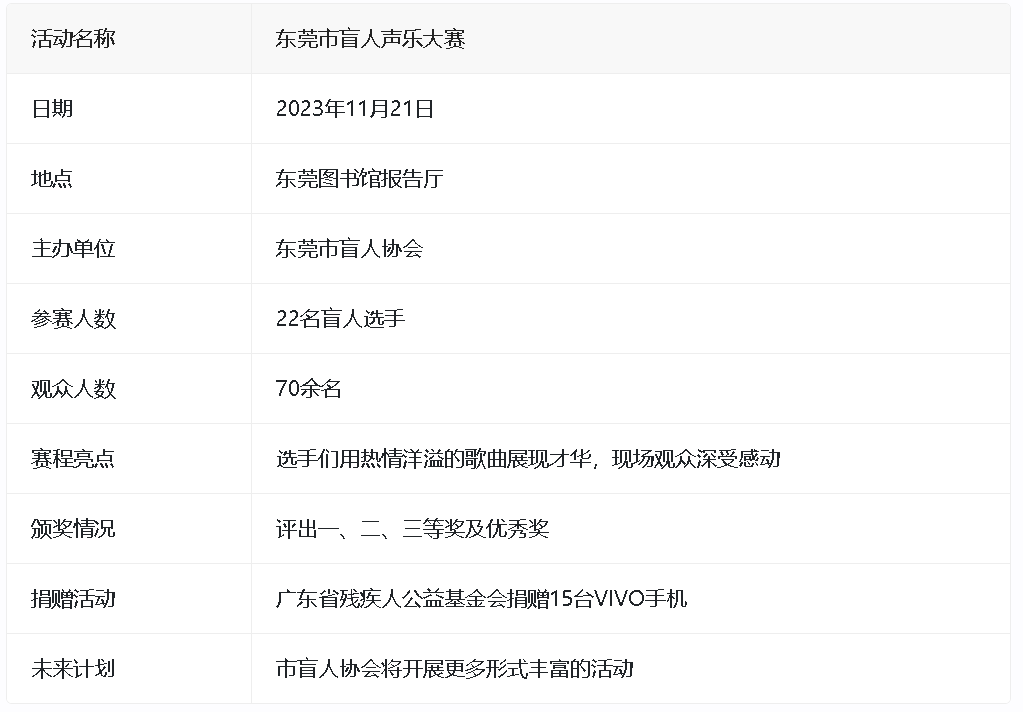 东莞市盲人声乐大赛概览