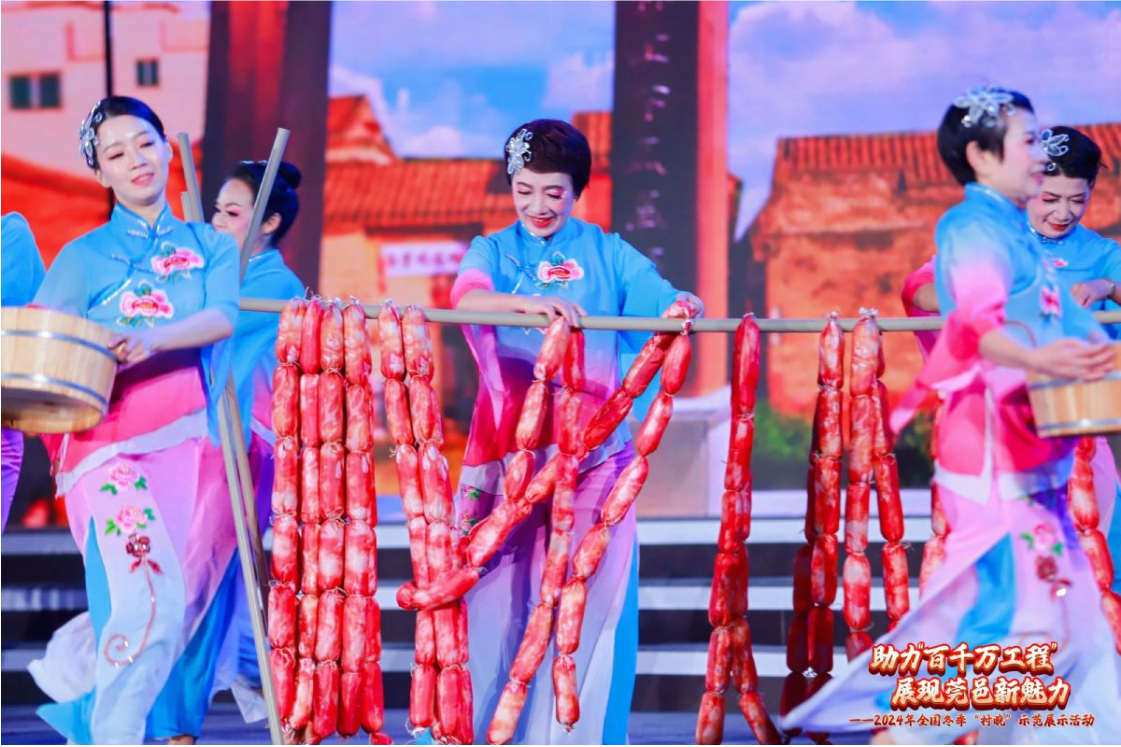 除了精彩的文艺表演,晚会还设置了“线上年货节+线下非遗市集”的非遗展示活动。厚街特色非遗项目如莞草编织、海月岩古迹展示、厚街腊肠制作技艺等一一亮相,为市民和游客带来了沉浸式的传统文化体验。同时,“遗宝探秘”文物保护知识趣味迎新春活动也让市民在游戏中感受到了文化遗产传承的魅力。本次“村晚”展示活动通过“传统文化与现代元素”、“多种艺术形式”和“乡村与城市文化”的深度融合,打造了一场接地气且高品位的文化盛宴。这种创新不仅凸显了厚街镇在推动乡村振兴中的文化担当,也为全国的“村晚”活动提供了新的样本。
