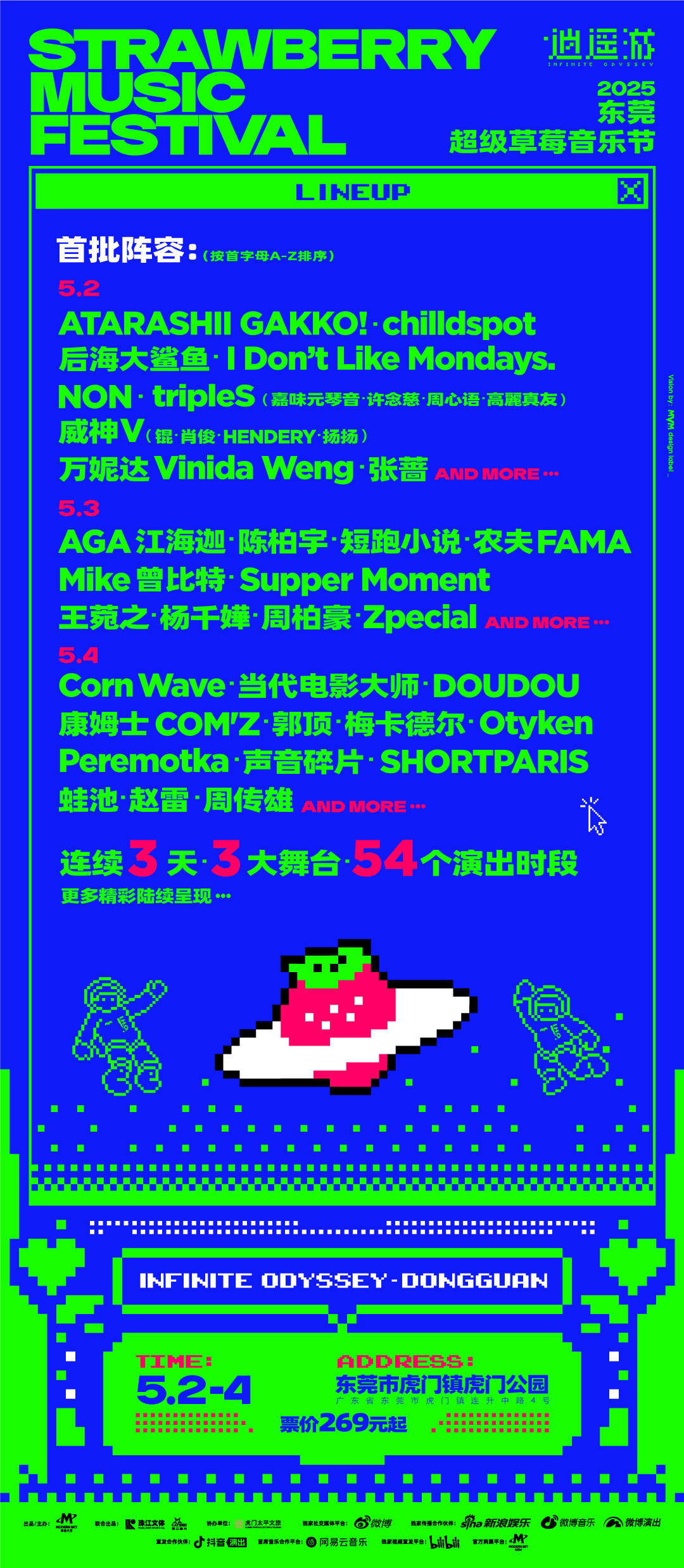 本届音乐节首创"三天三舞台"超体量架构,54组艺人横跨国际先锋、华语顶流及本土新锐三大板块,超半数阵容为首次登陆华南舞台。国际阵容呈现多元文化碰撞:日本摇滚新贵IDon'tLikeMondays.携现象级单曲强势压轴,俄罗斯暗黑工业乐队SHORTPARIS带来颠覆性视听实验,西伯利亚原生态乐团Otyken以民族野性点燃舞台。特别值得关注的是日本新锐女团ATARASHIIGAKKO!将在此完成中国首秀,威神V与tripleS两大亚洲偶像组合同台较量舞台表现力。