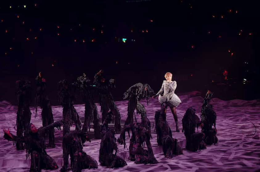 舞台增设悬浮透明屏,实现歌词与场景的动态视觉叙事。