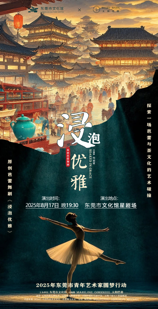 8月17日19时30分,东莞市文化馆星剧场将迎来原创芭蕾舞剧《浸泡优雅》的首演。这场由青年艺术家玛丽莲担任总编导的演出,系2025年东莞市青年艺术家圆梦行动重点项目,以足尖艺术对话千年茶史,开启非遗与芭蕾的跨界实验。