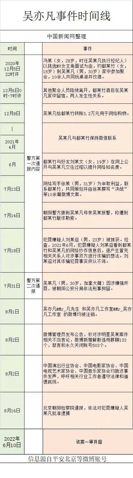 6月10日23时许,北京法院网官方微博@京法网事发布消息:2022年6月10日,北京市朝阳区人民法院依法开庭审理了被告人吴亦凡强奸、聚众淫乱一案。因涉及被害人隐私,案件依法采取不公开开庭审理方式。法院将依法择期宣判。
