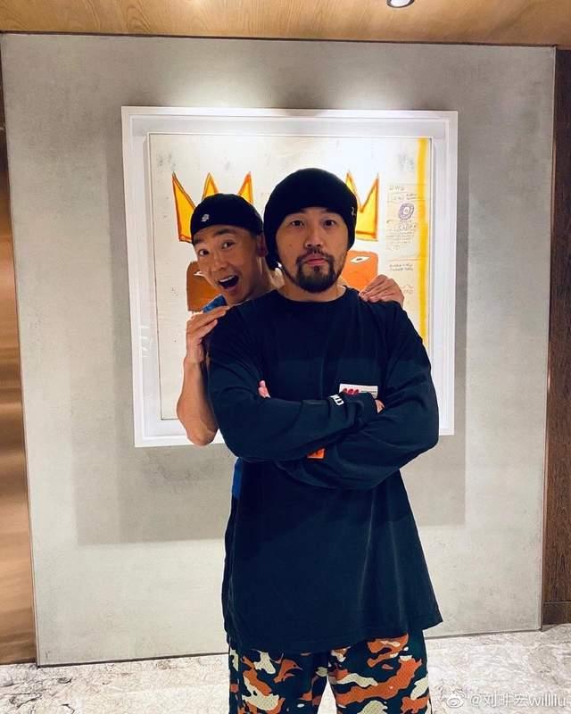 照片中,刘畊宏站在周杰伦的身后,似乎依旧是平时大家看到的穿搭,头戴棒球帽;倒是周杰伦胡子已经快长成络腮胡了,两只眼睛看着格外有神,两个人看起来是在参加画展,身后还有一张画;周杰伦还是喜欢帅气的姿势,双手怀抱胸前,不知是否因为胡子的原因,周杰伦看起来瘦了不少。