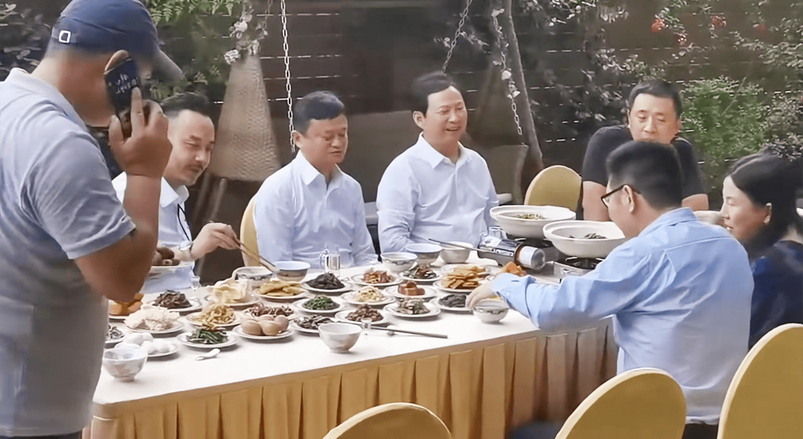 曝光的画面中,马云坐在镜头的C位,背后还有一张靠椅。由此来分析,这场聚会应该是某位成功人士的府邸,周围还有各种绿植以及看起来“掉价”的风扇,不过这并不影响在座人的雅致。