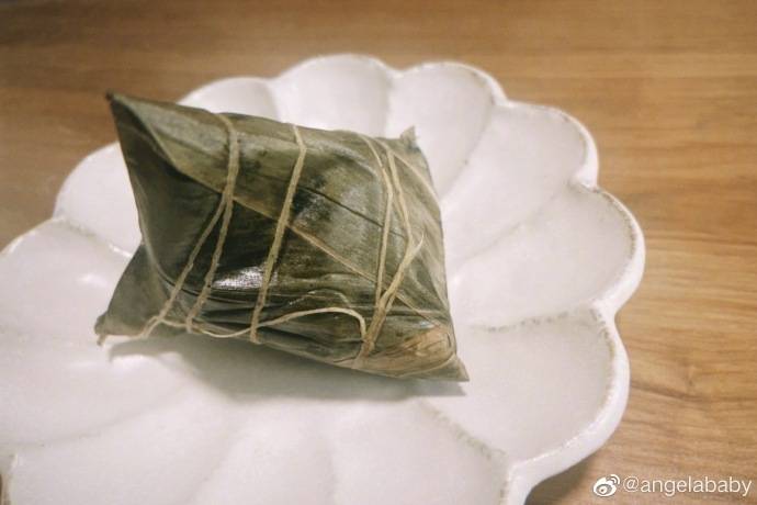 他的粽子是放在了一个精致且崭新的盘子里,而他还特意为粽子画上了可爱的表情,不仅让人看着垂涎欲滴,而且还更加的喜庆了。如果这照片放在以前,那难免会让人猜测是在和Angelababy隔空传情,相距千里依旧会共同吃粽子了。