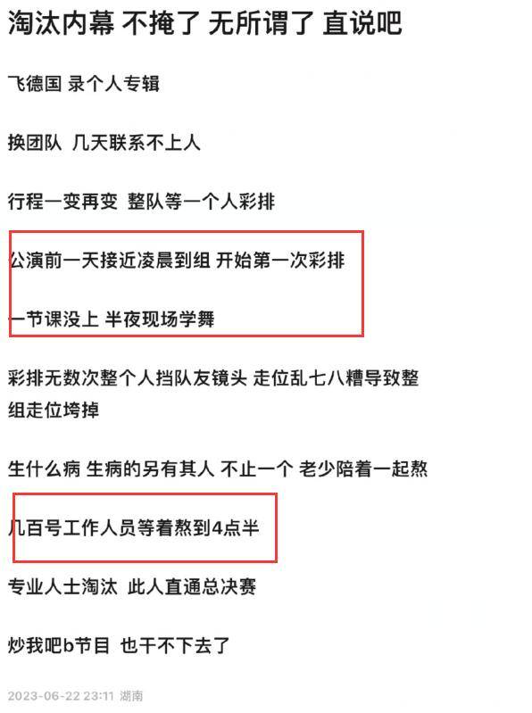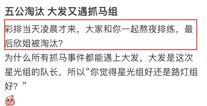 确实,早在“五公”录完第一时间,就有网友暗示《星光派对》组有人划水,害得整组姐姐临近公演前几小时才进行第一次彩排,随后又有人具体爆料吉娜没有训练拖垮整组姐姐的细节,可见这个消息还是有一定可信度的。到底是什么情况,相信等节目播出时自有分晓。