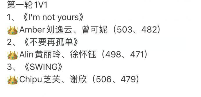 根据现场观众的爆料,《浪姐4》五公总共有三场比拼,分别为1V1PK赛、团队PK赛以及垮联盟合作秀。其中,1对1比拼三大联盟各胜一场,刘逸云(503)战胜曾可妮(482),芝芙(506)战胜谢欣(479),黄丽玲(498)险胜徐怀钰(471),6人的比分累计咬得很紧,并没有拉开太大差距。