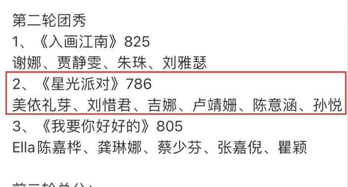 确实,《星光派对》是一首唱跳曲目,再加上美依礼芽、刘惜君、卢靖姗、孙悦、陈意涵以及吉娜6人的演绎,成绩应该不会差,但实际上她们确实只拿到了786票的超低低分,舞台呈现有多差不言而喻。