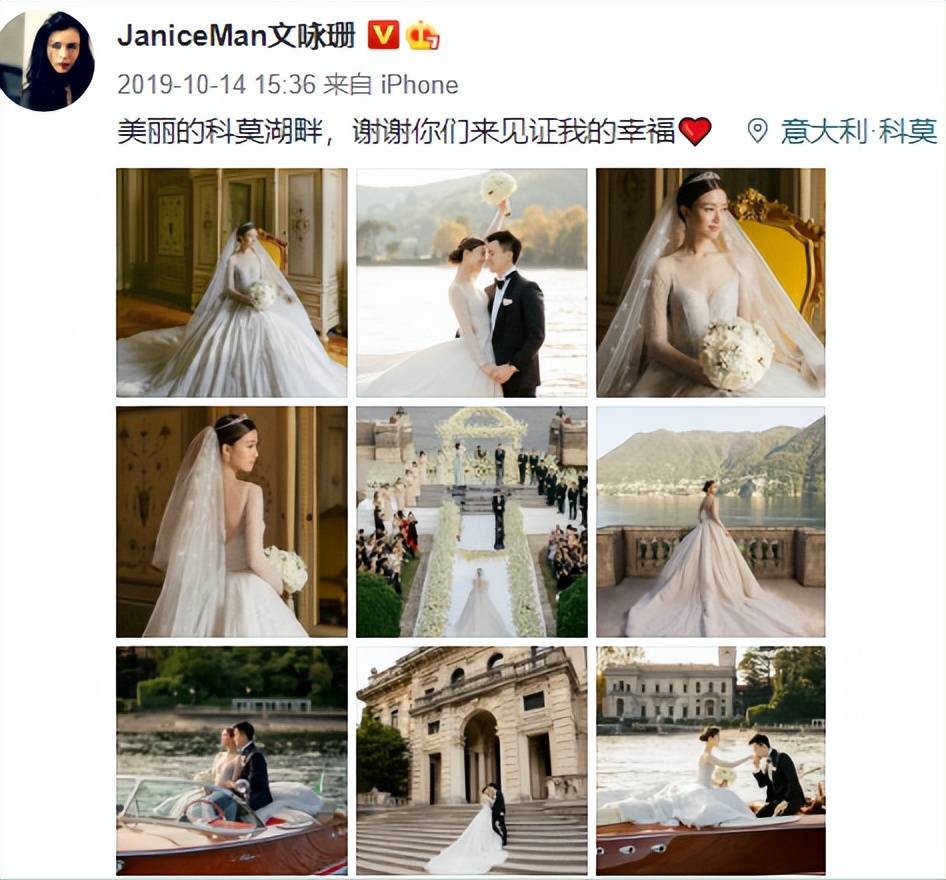 两人地下恋5年,在圈内基本是公开的秘密,2019年,文咏珊在自己30岁时官宣大婚,婚礼在意大利古堡Villa Erba举行,非常盛大,