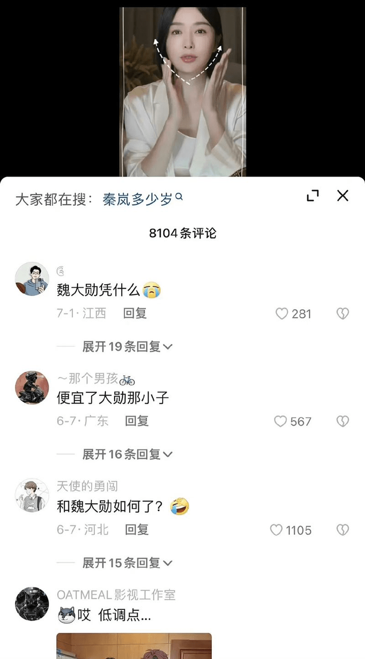 从秦岚的社群留言区可以明显看出,大约在魏大勋爆红后的一周时间内,他的评价已经从“那小子凭什么”转变为“姐姐眼光真好”,这种超现实的留言评论也登上了微博热搜榜,引起了广泛关注和讨论。许多网友和粉丝认为这种踩高捧低的态度很难看,觉得这些留言缺乏对他人的尊重,因此再次引发了公众的热议。
