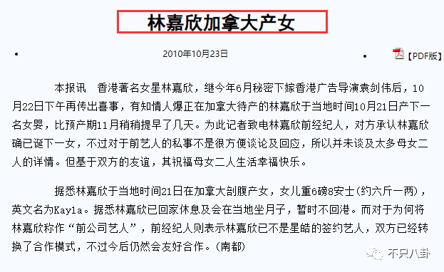 2010年,林嘉欣未婚先孕,随后她与袁剑伟火速在加拿大办婚礼。