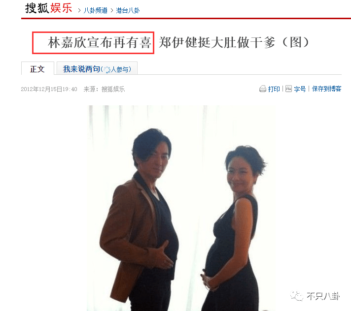 2012年,林嘉欣又宣布怀上二胎,朋友都很为她高兴,与她一起拍过《亲密》《恋之风景》的郑伊健争着当孩子干爹。