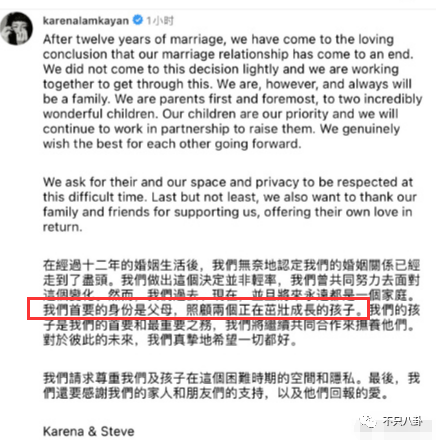 随后夫妻俩坦诚已经离婚,称以后会一起照顾孩子,永远是家人。